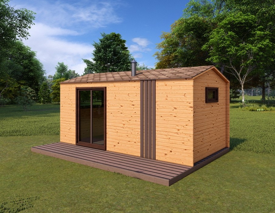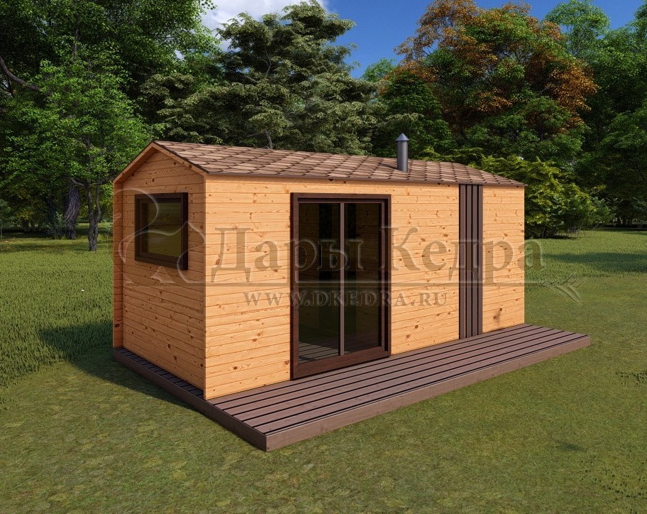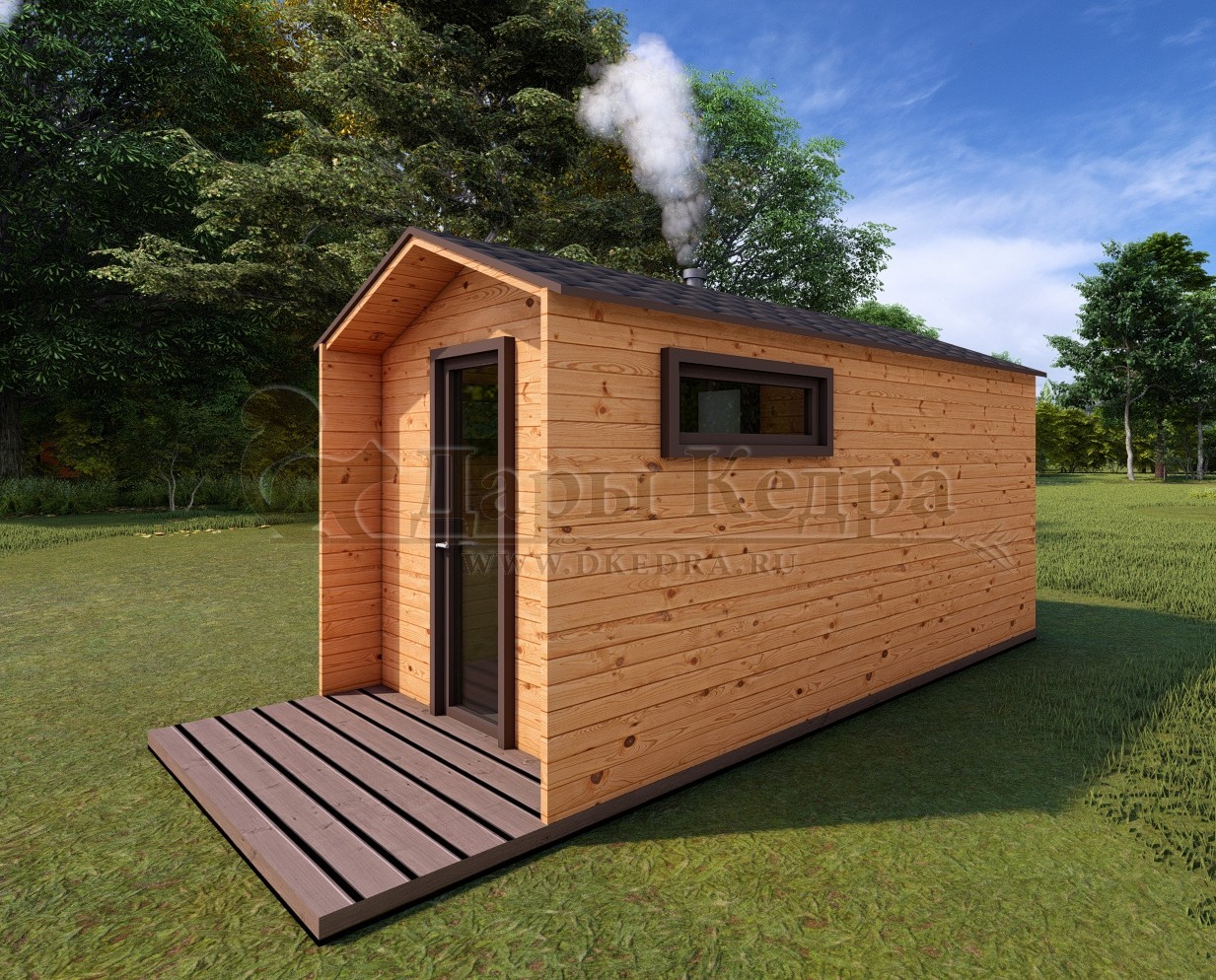 Каркасно-щитовая баня из кедра «Мини» с верандой Это классическая прямоугольная модель бани с двумя отделениями: парилкой и раздевалкой. Для удобства пользования раздевалка оснащена лавочкой и вешалкой. Парилка оборудована двухуровневым открытым полком и печью. За счет небольшой конструкции баня нагревается в течении 30 минут. На просторной веранде можно оставить вещи или отдохнуть после парения. Каркасно-щитовую баню можно заказать как в готовом, так и в разборном варианте. В разборной модели готовые щиты из кедра быстро собираются в полноценное строение, что также позволяет исключить лишний строительный мусор. Такая баня не требует полноценный фундамент, поэтому при необходимости ее можно перенести в другое место. Обращаем Ваше внимание, что в стандартную комплектацию бани входит полок открытого типа в парной. Дополнительно можно заказать полок закрытого типа или лавку! Древесина кедра насыщена эфирными маслами и фитонцидами, которые активируются при воздействии температур. Таким образом, парение в каркаско-щитовых банях из кедра становится еще полезнее. , ,