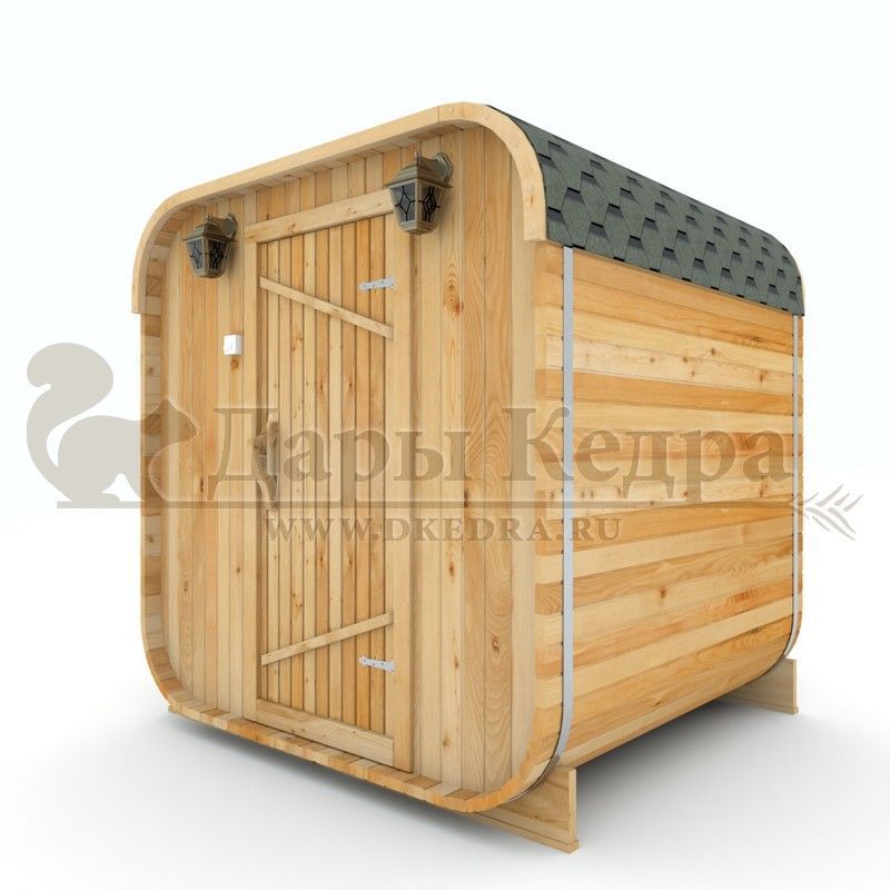 Баня-бочка квадро из кедра 3 метра Это квадратное изделие с закругленными углами. За счет такой конструкции во время топки воздух циркулирует по кругу, поэтому баня-бочка нагревается не более 30 минут. Баня включает в себя раздевалку и парилку. Лавочки из кедра установлены по всей длине бани-бочки с обеих сторон. Печь расположена в парилке около дальней стены. Для удобства пользования в раздевалке находится вешалка и полочка из кедра. По вашему желанию баню-бочку квадро можно укомплектовать козырьком, верандой и печью с внешней загрузкой, благодаря которой весь мусор после топки остается на улице. Баня-бочка квадро не требует полноценный фундамент, поэтому при необходимости ее можно перенести в другое место. Обращаем Ваше внимание, что в стандартную комплектацию бани входят лавки в парной с обеих сторон. Дополнительно можно заказать полок открытого или закрытого типа! Кедр обладает ароматическими свойствами. Он не деформируется и влагоустойчив, при правильном уходе за деревом на нем не развиваются грибки и плесень. Обращаем Ваше внимание, что данную модель бани-бочки можно изготовить с ровным полом. Эта дополнительная опция и оплачивается отдельно! , ,
