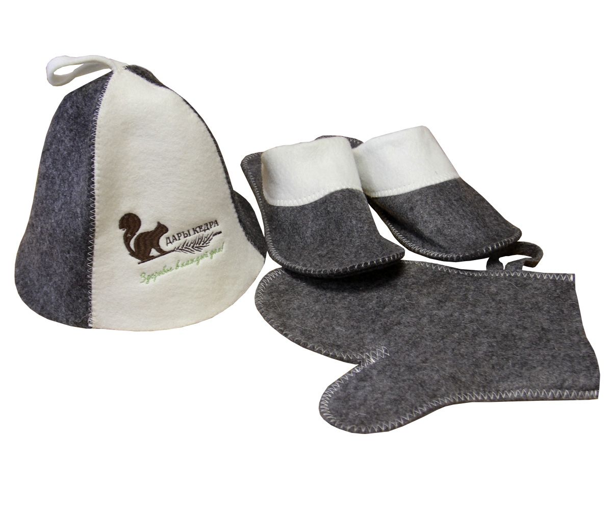 Фирменный набор для бани и сауны: шапка, тапочки, рукавица из войлока Комплект: шапка, тапочки, рукавица с фирменным логотипом будут отличным дополнением к бане, защищая от высоких температур и подчёркивая вашу индивидуальность во всём! , ,