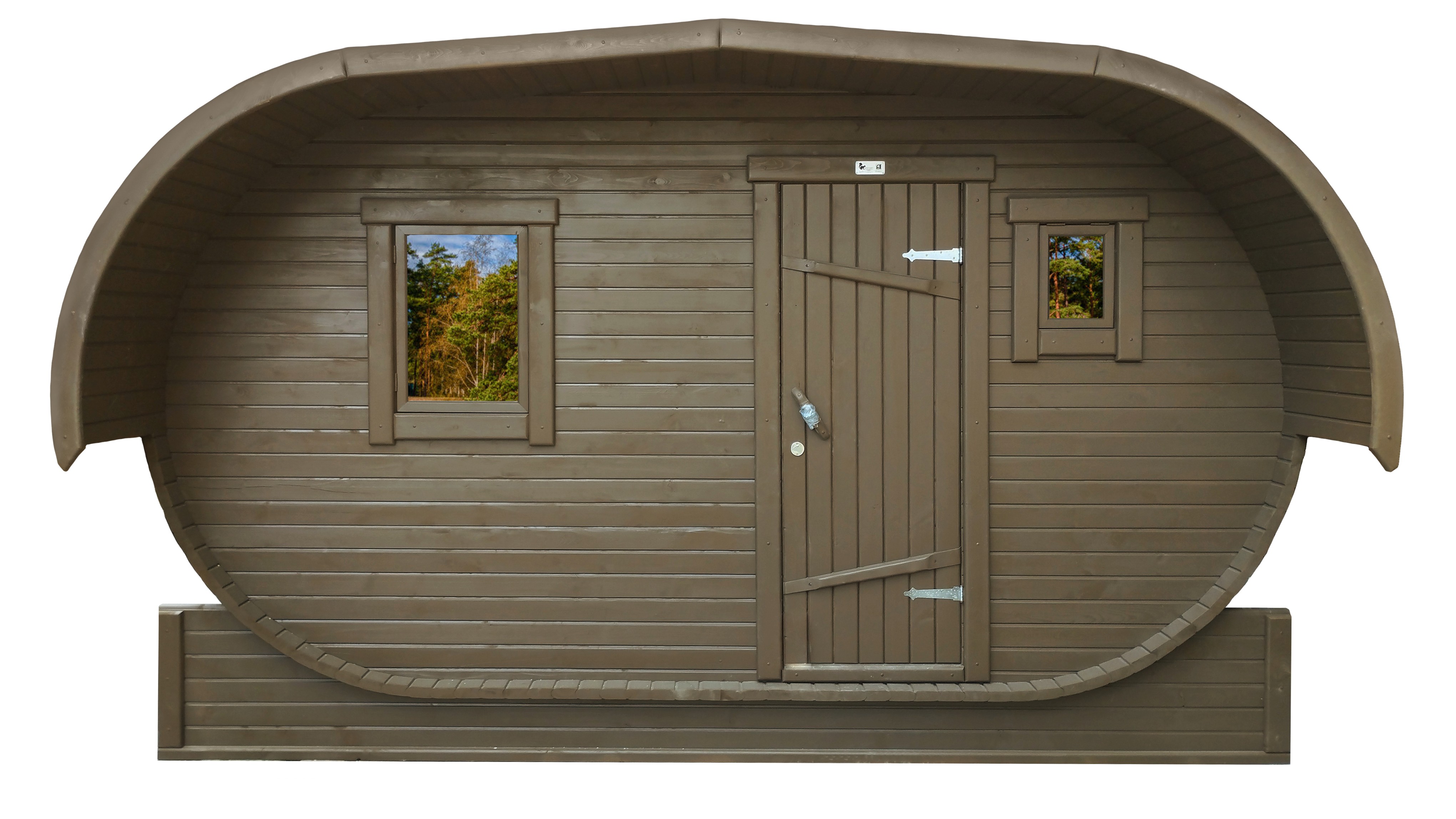 Баня-бочка буханка из кедра с козырьком (все размеры) Баня-буханка более просторная за счет увеличенной высоты потолков и ровного пола. Козырек не только украшает баню, но и защищает оставленную обувь от дождя. Лавочки из кедра находятся по всей длине бани-бочки с обеих сторон. Печь расположена в парилке около дальней стены. Время растопки такой бани не превышает 30 минут. В зависимости от выбранного размера баня-бочка буханка с козырьком имеет следующую комплектацию: Баня-бочка буханка 2,5 метра - парилка; Баня-бочка буханка 3,5 и 4,5 метра - раздевалка, парилка; Баня-бочка буханка 5,5 метров - раздевалка, парилка, моечная. По вашему желанию ее можно укомплектовать печью с внешней загрузкой, благодаря которой весь мусор вовремя топки остается на улице. Баня-бочка буханка не требует полноценный фундамент, поэтому при необходимости ее можно перенести в другое место. Обращаем Ваше внимание, что в стандартную комплектацию бани входят полки открытого типа в парной с обеих сторон. Дополнительно можно заказать полок закрытого типа или лавку! Кедр обладает ароматическими свойствами. Он не деформируется и влагоустойчив, при правильном уходе за деревом на нем не развиваются грибки и плесень.