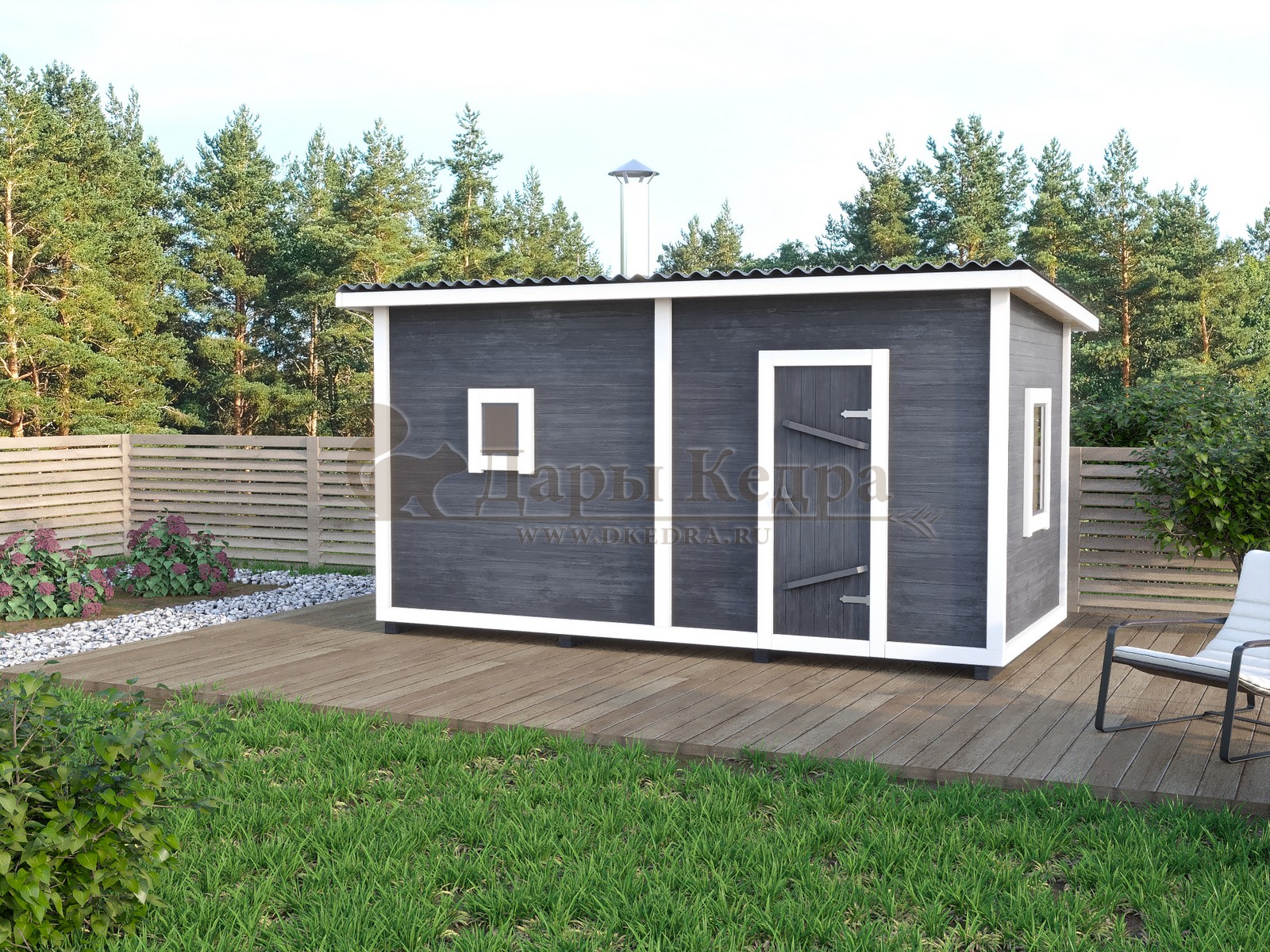 Баня-бочка квадро из кедра с козырьком (все размеры) Это прямоугольное изделие с закругленными углами. За счет такой конструкции во время топки воздух циркулирует по кругу, поэтому баня-бочка нагревается не более 30 минут. Козырек не только украшает баню, но и защищает оставленную обувь от дождя. Лавочки из кедра находятся по всей длине бани-бочки с обеих сторон. Печь расположена в парилке около дальней стены. В зависимости от выбранного размера баня-бочка квадро с козырьком имеет следующую комплектацию: Баня-бочка квадро 2,5 метра - парилка; Баня-бочка квадро 3,5 и 4,5 метра - раздевалка, парилка; Баня-бочка квадро 5,5 метров - раздевалка, парилка, моечная. По вашему желанию ее можно укомплектовать печью с внешней загрузкой, благодаря которой весь мусор вовремя топки остается на улице. Баня-бочка квадро не требует полноценный фундамент, поэтому при необходимости ее можно перенести в другое место. Обращаем Ваше внимание, что в стандартную комплектацию бани входят лавки в парной с обеих сторон. Дополнительно можно заказать полок открытого или закрытого типа! Кедр обладает ароматическими свойствами. Он не деформируется и влагоустойчив, при правильном уходе за деревом на нем не развиваются грибки и плесень. Обращаем Ваше внимание, что данную модель бани-бочки можно изготовить с ровным полом. Эта дополнительная опция и оплачивается отдельно!