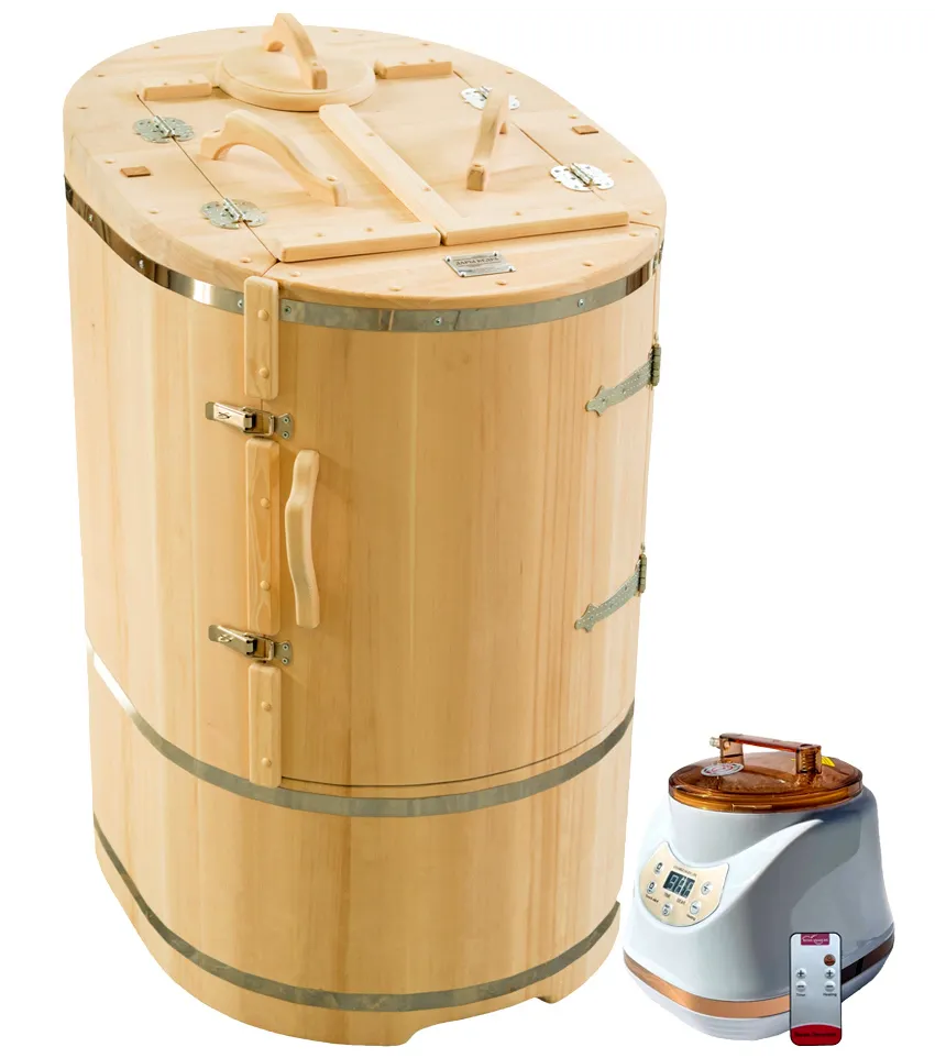 Готовый комплект «Универсальный»: кедровая бочка с парогенератором + био-защита изнутри и снаружи Готовый комплект - это полностью укомплектованный набор с фитобочкой для процедур парения. Овальная модель более просторна и удобна в использовании. Толщина стенок составляет 40-45 мм, что позволяет увеличить срок службы изделия. Верхний скос делает положение головы более комфортным и улучшает обзор. Фитобочка оборудована откидными створками, дверцей и отверстием для головы. Во время парения человек сидит внутри кедровой бочки, а голова находится снаружи. Благодаря этому исключается возможность перегрева. Подлокотники из кедра, встроенные ручки на створках и двери делают эксплуатацию более удобной. Парение в фитобочке благотворно влияет на организм в целом: повышается иммунитет, выводятся шлаки и токсины, улучшается работа органов тела и состояние кожи.