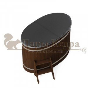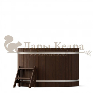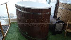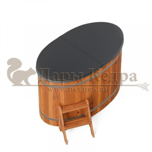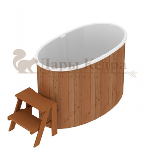 Это купель с внутренней овальной чашей, которая изготовлена из современного прочного и термоустойчивого материала (композита). Форма чаши обеспечивает комфортную посадку внутри изделия. Для удобного использования купель оснащена приставной лестницей. Обручи из нержавеющей стали декорируют купель с композитом и равномерно распределяют нагрузку во время процедур.
