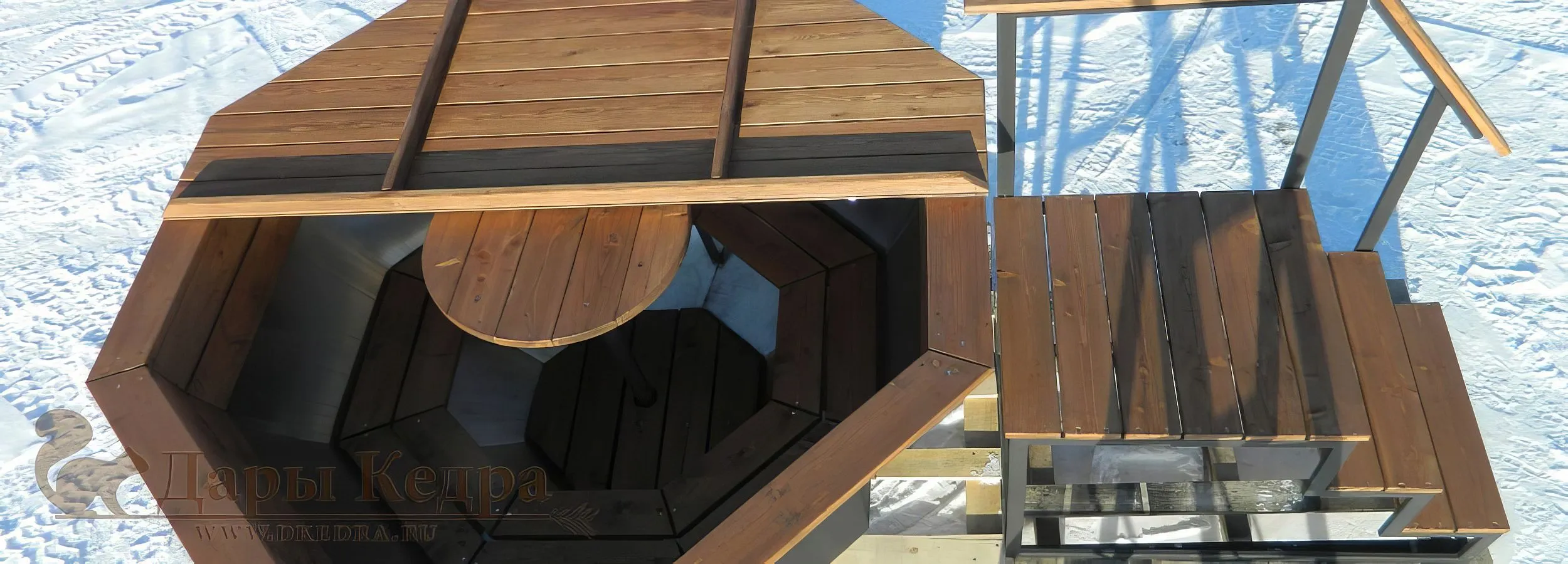 • Кроме того, такая банная конструкция может составить конкуренцию купелям фурако и использоваться в качестве горячего источника даже в мороз.